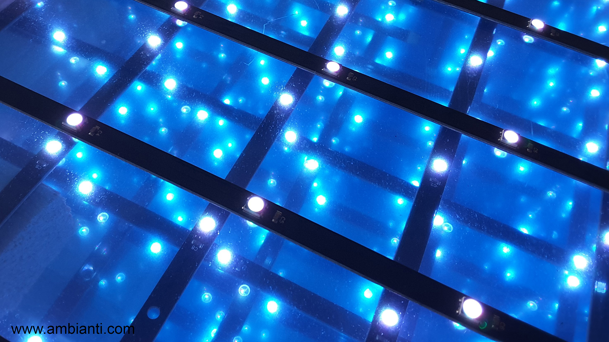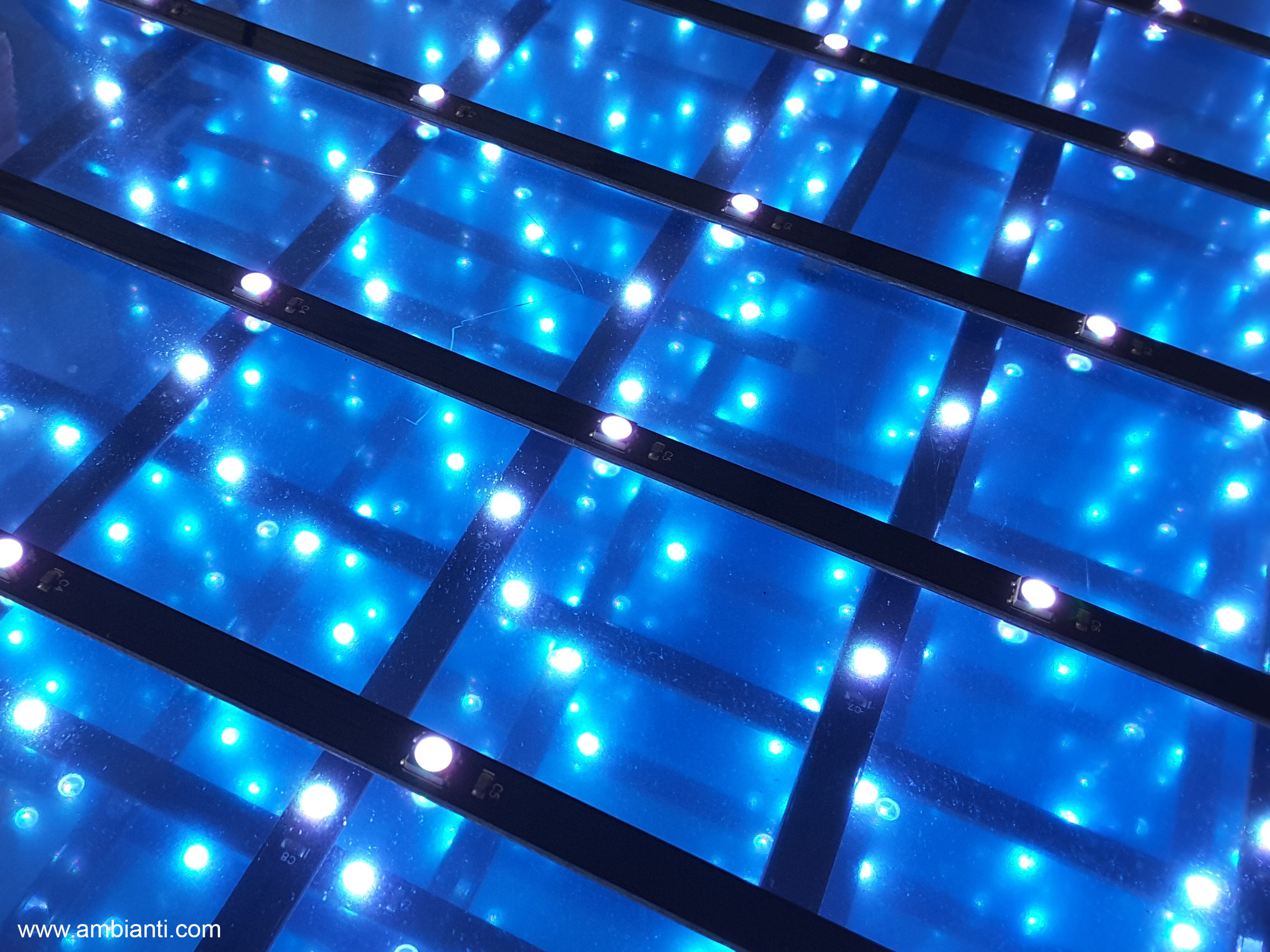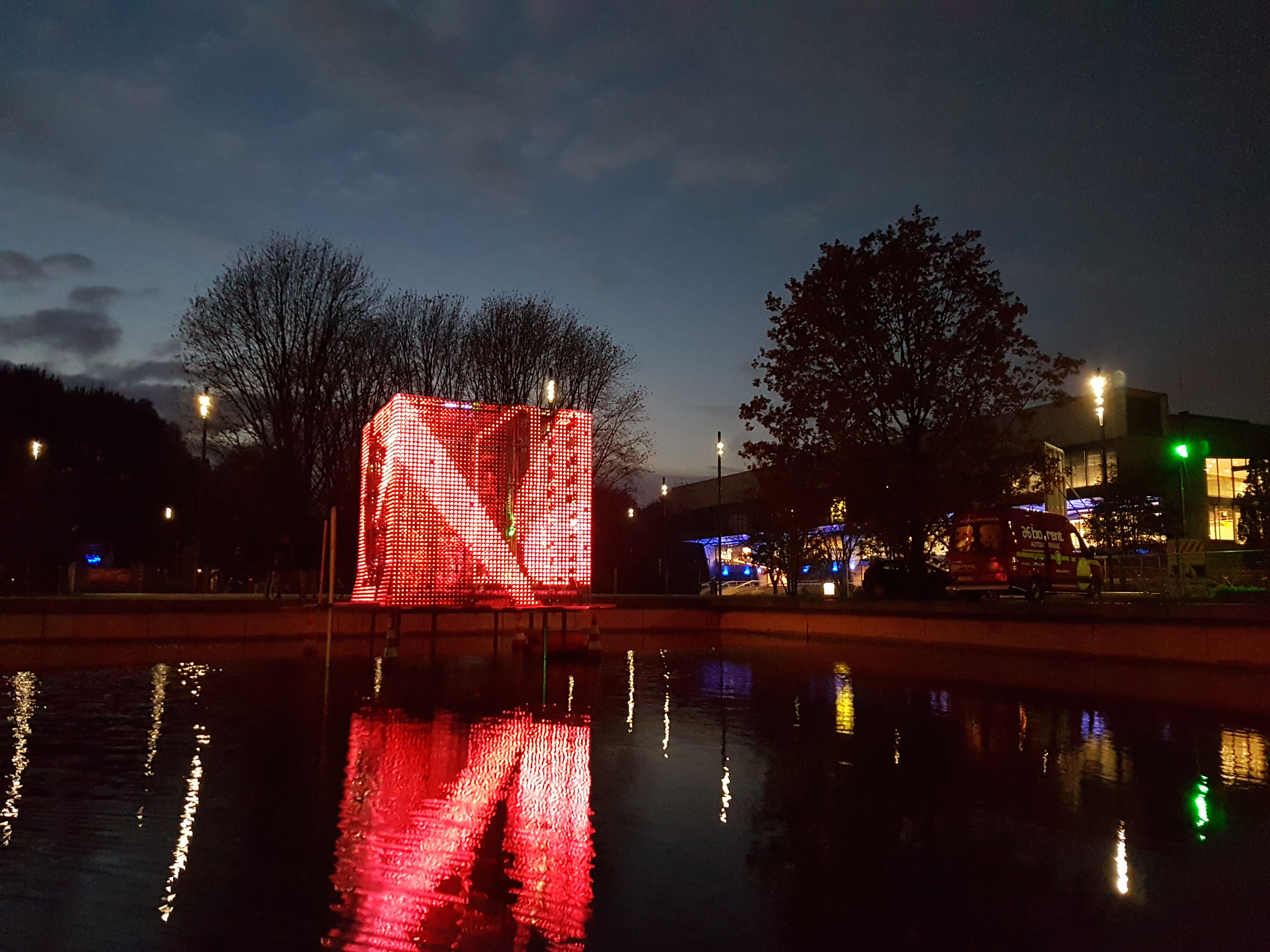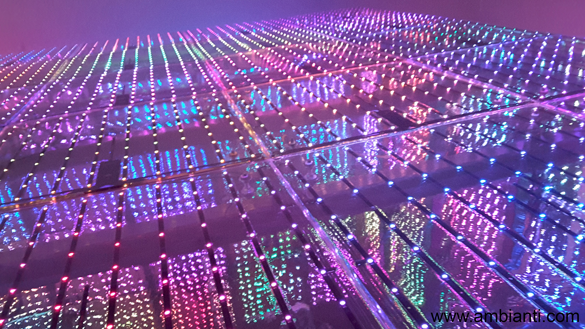 Caption: Especially for the project, a custom, translucent RGB version of the Ambianti tiles is developed. In addition to other modifications, the tiles are designed fully waterproof (IP67-compliant), adhering to the wet weather conditions typical for the late fall in the Netherlands.