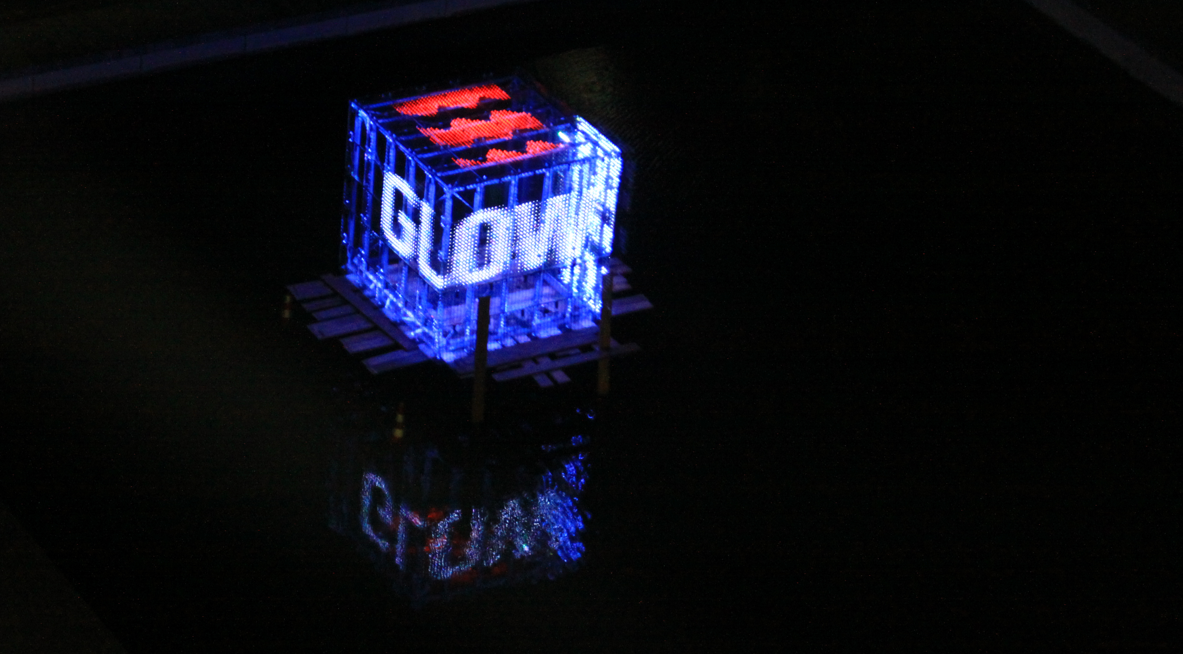 Caption: One hundred of Ambianti T2 Glow tiles comprise a massive translucent intelligent lighting cube with a built-in supercomputer that will reciprocate the movements of the Moholy-Nagy’s sculpture located in the Van Abbemuseum.